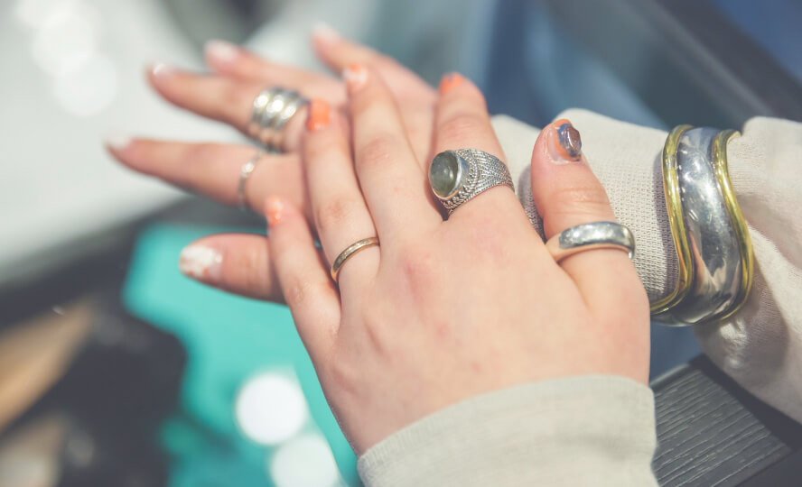 今日のコーデのポイントは、トレンドのほんのり透けるシアー感のあるニット。スカートはIラインでスッキリ見えるし、抜け感もあって、お気に入りです。アクセサリーが好きで、たくさんつけてきました!古着屋さん、ビンテージショップ…いろんなとこにふらっと寄って買っています。