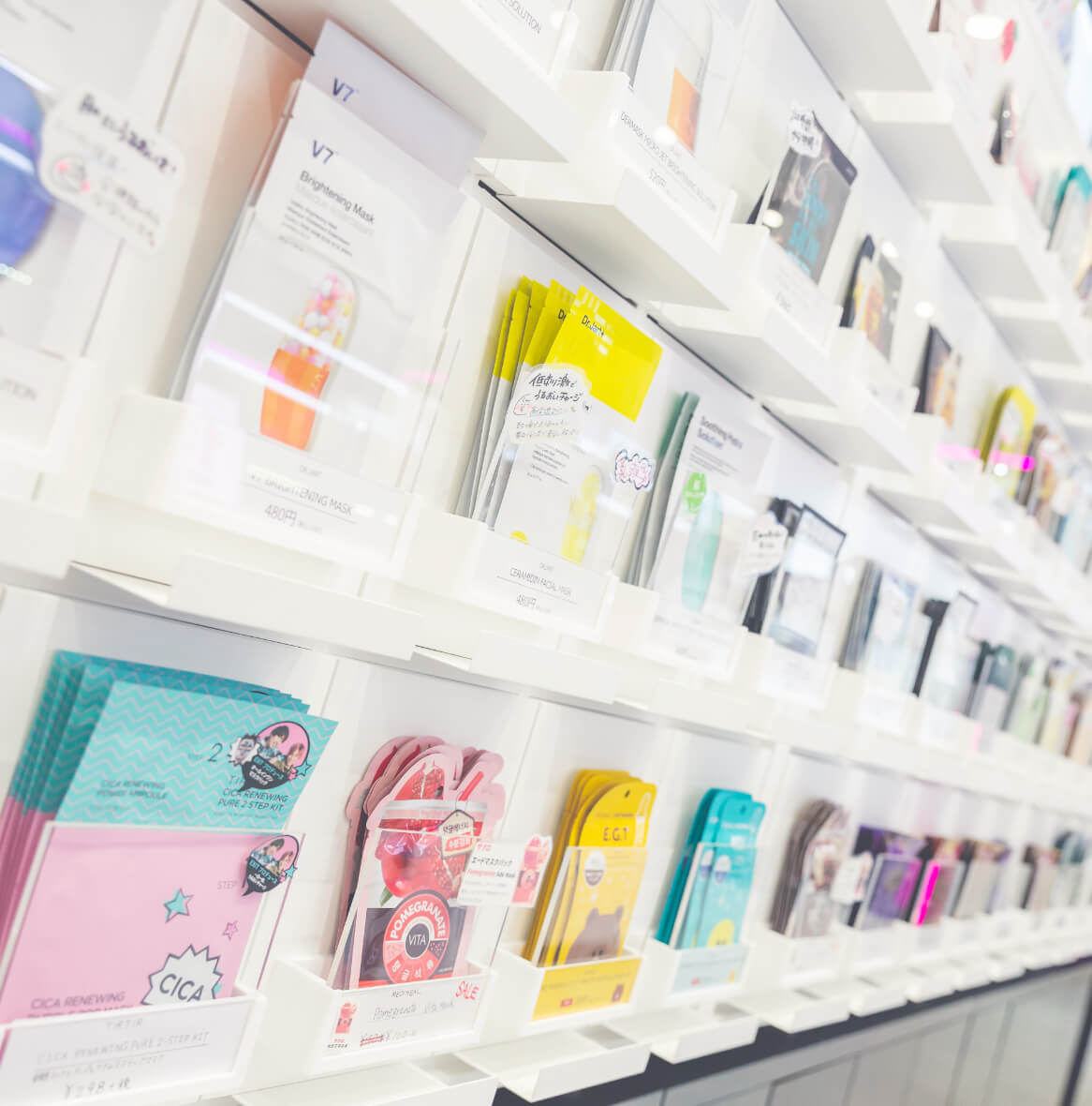 リップやアイシャドーはもちろん、マスクシートやスキンケアなども多数取り揃えております。