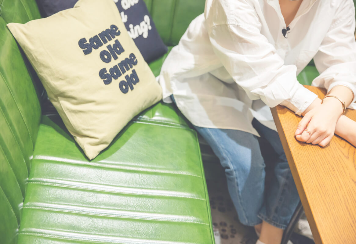 おうちの家具はニコアンドのものが中心です。今狙っているのは、CLASSIC DINER SERIESのソファカウチ。コンパクトなので、お部屋が狭くても空間を広々と使えます。座り心地がよくてくつろげますし、同じシリーズのダイニングテーブルを組み合わせればお食事もできるので、1セットあればリビングにもダイニングにもなるんです。カラー展開がすごく豊富にあるんですが、私は緑色に惹かれています。