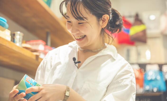 ニコアンドは、いろいろな物を扱っているので、新しいものに出会うわくわくとか、発見があります。トレンドのものだけじゃなくベーシックなものもあって、人それぞれ、どこか心に響いてしまうようなアイテムが並んでいると思いますね。クスって笑ってしまうような変わったアイテムが入ってくると私も思わず買ってしまいます。同じようにそれを見てクスってしているお客さんを見ると「かわいいですよね!」って話しかけちゃいますね。